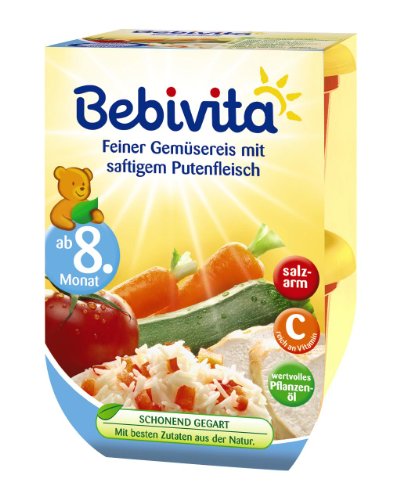Bebivita Feiner Gemüsereis + Pute 1561, 4er Pack (4 x 2 x 220 g Stück)