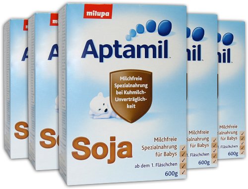 Aptamil Soja, Milchfreie Spezialnahrung für Babys mit Kuhmilch-Unverträglichkeit, Pulver, 3.000 g (5 x 600 g)
