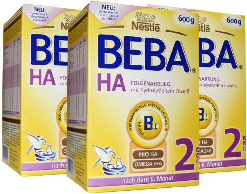 Nestlé BEBA HA 2 ist ideal für allergiegefährdete Babys. Nestlé BEBA HA 2 ist zur kombinierten Flaschennahrung mit Brei und/oder Gläschen geeignet. Das so wichtige Eiweiß wird mit einem speziellen Verfahren behandelt, so dass es für Ihr Baby leicht verdaulich und allergenarm ist. Das Eiweiß ist für die Entwicklung und das Wachstum Ihres Baby verantwortlich. Des Weiteren stärken die natürlichen Bifiduskulturen das Immunsystem Ihres Babys. Neueste wissenschaftliche Studien weisen darauf hin, dass die Bifiduskulturen Allergien vorbeugen können.